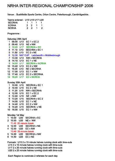 Congratulations to the Eastern Counties region for winning the under 13′s under 15′s and under 17′s Inter- Regional Championships at the Bushfields Sports Centre on the weekend 29th and 30th April 2006.